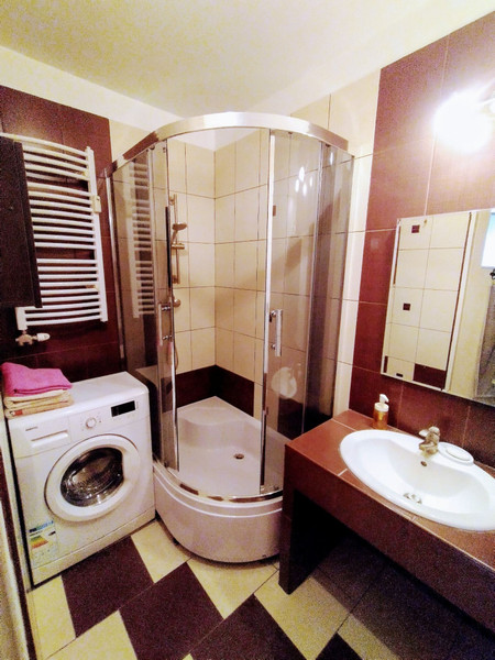 Mieszkanie wyposażone jest w lodówkę, pralkę, zmywarkę oraz skromne umeblowanie.