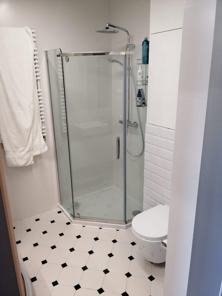 • Łazienka – kabina prysznicowa, pralko suszarka, dużo miejsca do przechowywania