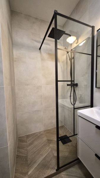 Łazienka z prysznicem - nowa pralka w wyposażeniu