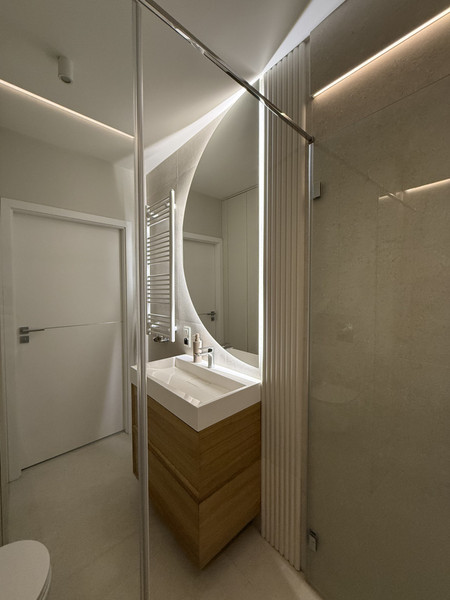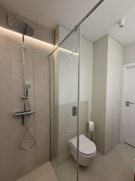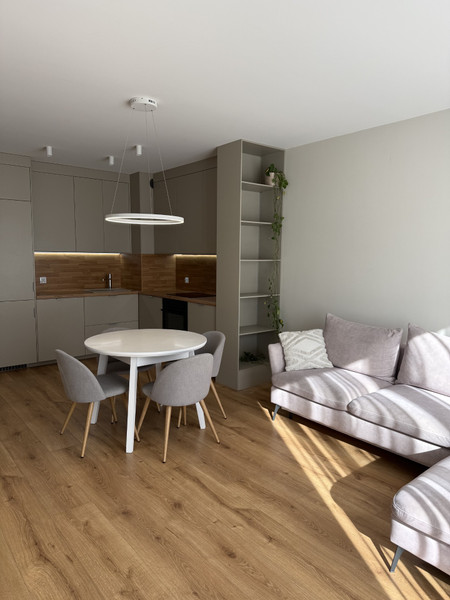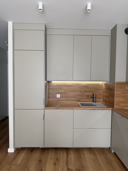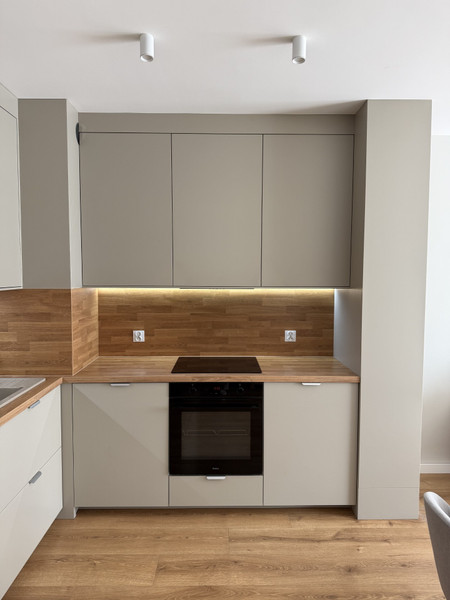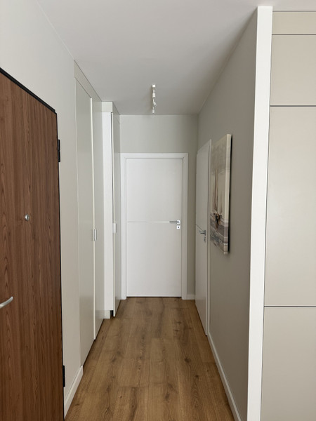 - Pełne wyposażenie ( lodówka w zabudowie, zamrażarka, płyta indukcyjna, piekarnik, zmywarka, czajnik, okap, naczynia, zastawa, a także telewizor oraz pralko-suszarka, szafy w przedpokoju, korytarzu i sypialni).