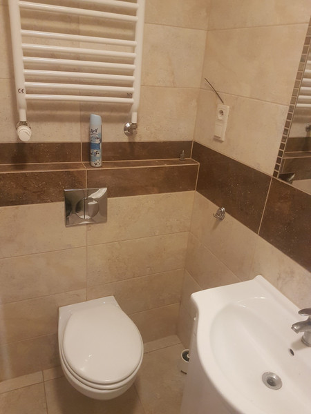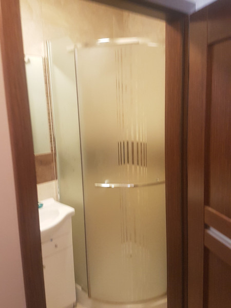 łazienkę z kabiną prysznicowa i umywalką oraz wc