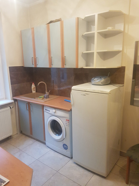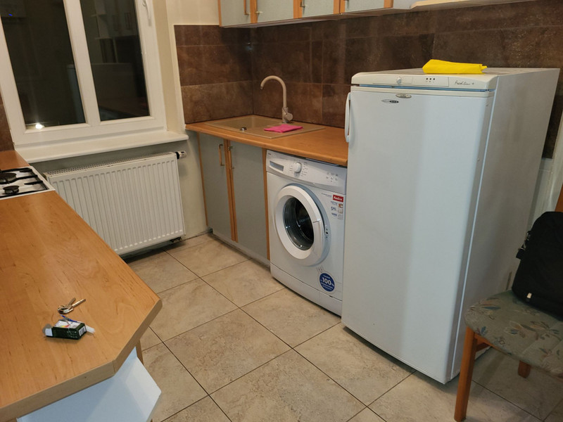 mieszkanie posiada umeblowaną kuchnie z lodówka i kuchenką gazową,oraz pralką.