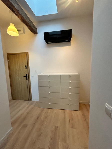 Na podłodze panele podłogowe . Mieszkanie wyposażone w 1 pojemną szafę z Ikea, oraz komody. W sypialni łóżko z materacem z ikea. Mieszkanie po generalnym remoncie. Wszystkie instalacje wod-kan i elektryczne wymienione, sprzęty oraz wyposażenie jest nowe. Niewątpliwie atutem wyposażenia mieszkania jest nowa klimatyzacja.