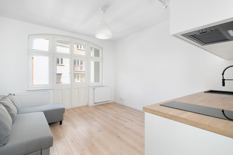 Polecam do wynajęcia jedno z trzech mieszkań o powierzchni 20,60 m2 . Kawalerka znajduje się na 2 piętrze, w rewitalizowanej kamienicy przy ul. Żurawia 7 w Poznaniu. Jest to jedno z trzech mieszkań, które łączy część wspólna o powierzchni 5,63m2 gdzie znajduje się nowy kocioł beretta oraz wspólna pralko-suszarka dla najemców.