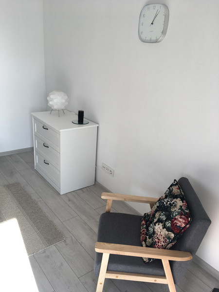 Wyposażenie: podłogi panelowe (jasne), w korytarzu duża szafa -garderoba (Ikea), w pokoju meble Ikea. Łózko Ikea rozkładane dwuosobowe.