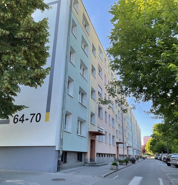 W bardzo dobrej lokalizacji -sklepy np biedronka, szkoła, przedszkole, przystanek tramwajowy i autobusowy w bardzo bliskiej odległości