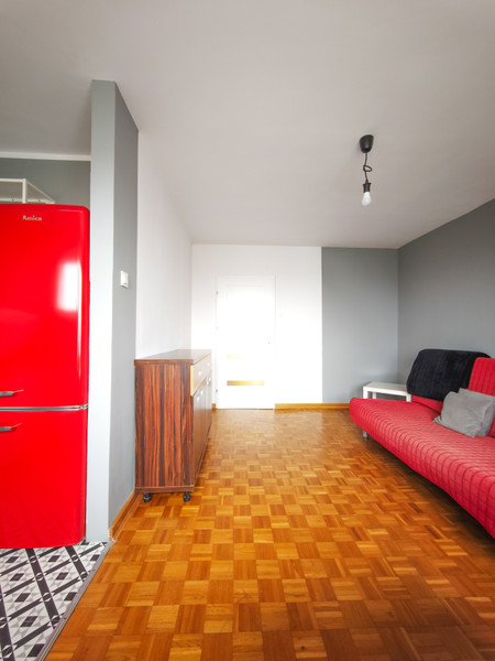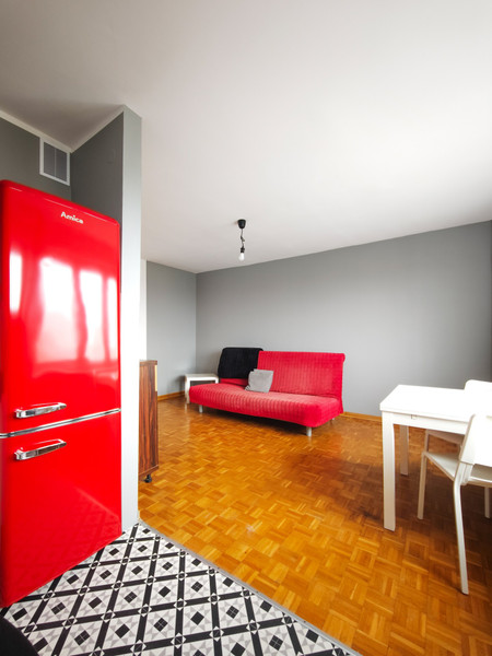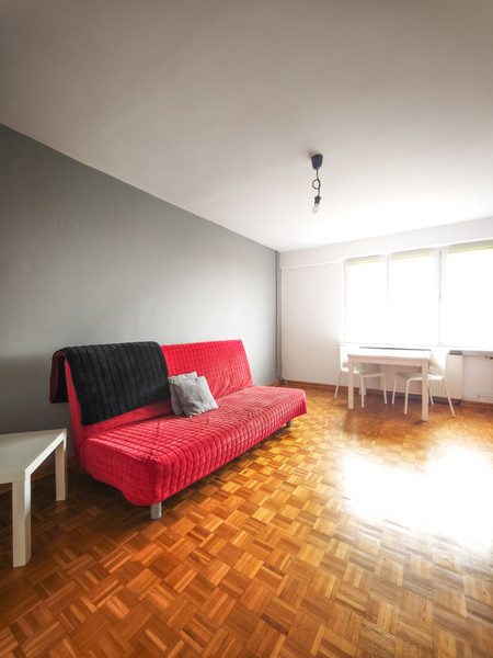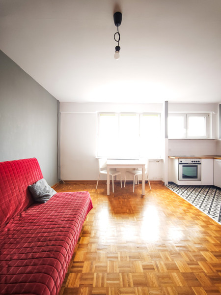 Mieszkanie o powierzchni ok. 44 m2. 2 pokoje w tym jeden z aneksem kuchennym oraz rozkładaną, wygodną kanapą do spania, a drugi z wyjściem na balkon. Kuchnia wyposażona w takie sprzęty jak lodówka, piekarnik, płyta ceramiczna i niezbędne szafki do przechowywania. W łazience kabina prysznicowa, umywalka, toaleta i pralka. W drugim pokoju (z balkonem) znajduje się pojemna szafa. Możliwość montażu telewizora o przekątnej 50-60 cali znajdującego się na wyposażeniu mieszkania w wybranym przez najemcę miejscu. Mieszkanie jest gruntownie odświeżone, odmalowane, nowe drzwi między pokojami, nowe meble kuchenne itp.