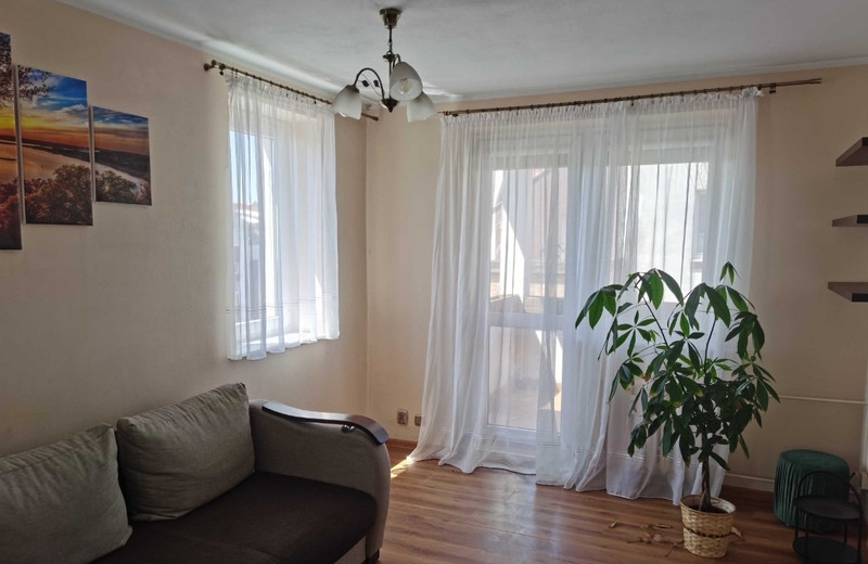 Dwa pokoje, jeden duży połączony z kuchnią. Do mieszkania przypisana piwnica. Balkon.