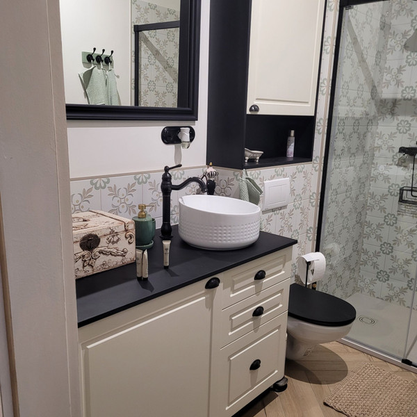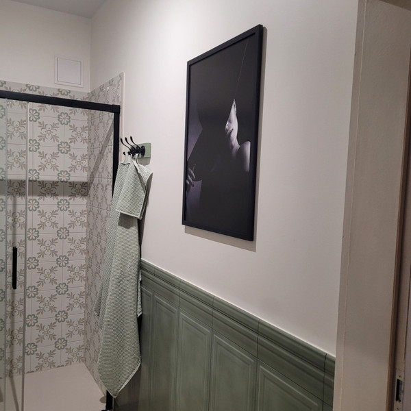 Kawalerka o powierzchni 24 m² została zaprojektowana z niezwykłą dbałością o detale. Przestrzeń dzienna z aneksem kuchennym zachwyca dużym, reprezentacyjnym oknem, które pięknie doświetla wnętrze i podkreśla jego szlachetny charakter. Całość tworzy spójną, harmonijną i bardzo przytulną przestrzeń do życia.