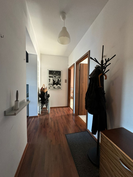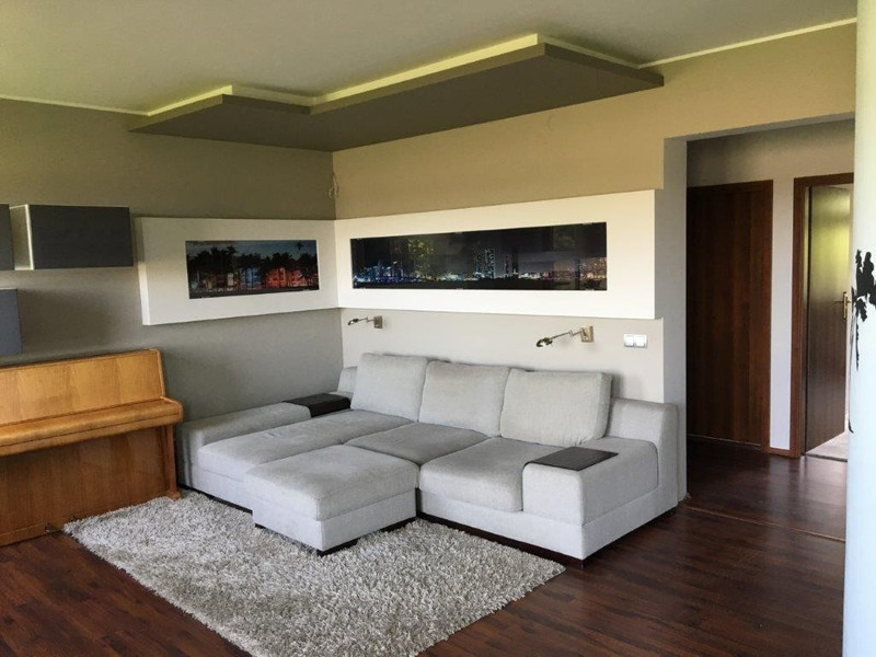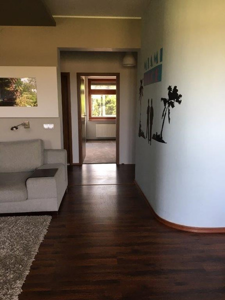 - Na podłogach w salonie i korytarzu panele, w kuchni i łazience płytki w sypialniach wykładziny.