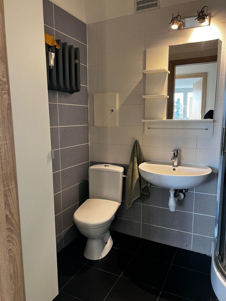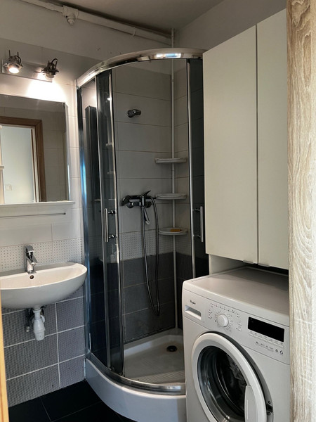 W pełni umeblowane, kuchnia wyposażona w sprzęt AGD (płyta indukcyjna, zmywarka, lodówka, piekarnik itp.), no korytarzu zabudowa typu Komandor, łazienka z kabiną prysznicową (na wyposażeniu pralka Siemens).