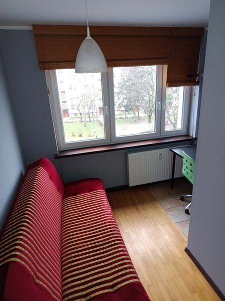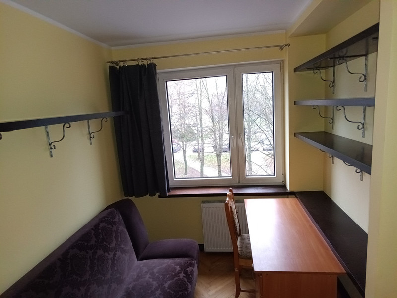 Wynajmę 3-pokojowe mieszkanie, tylko dla studentów, max dla 3 osób. Mieszkanie jest umeblowane, z balkonem i piwnicą, łazienka i w-c jako osobne pomieszczenia. Powierzchnia pokoi to 14,5m2, 8m2 i 7m2 (pokój niebieski).