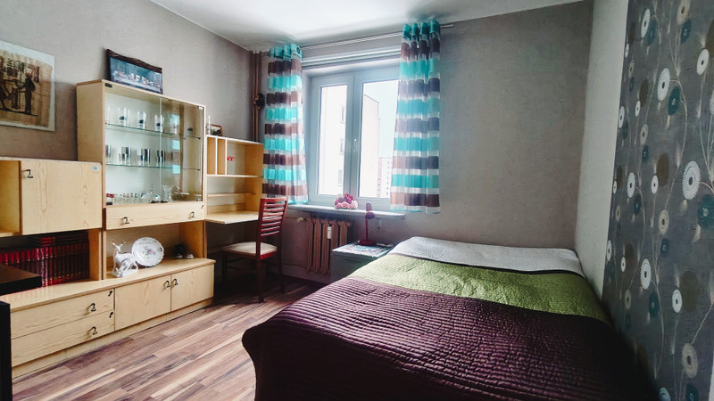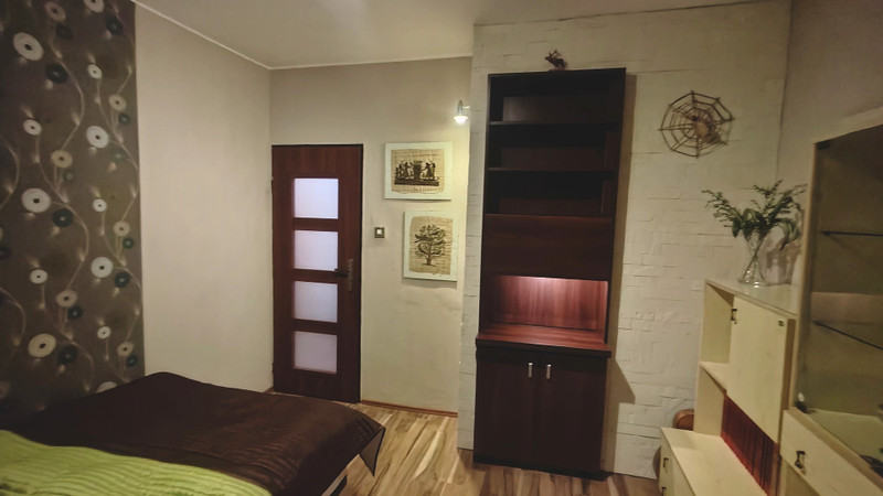 - Sypialnia: łóżko 120 cm, meblościanka, szafka nocna, biurko.