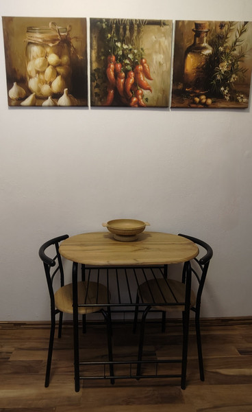 - Salon: sofa z funkcją spania, fotel relax, stół, TV, meblościanka, klimatyzacja.