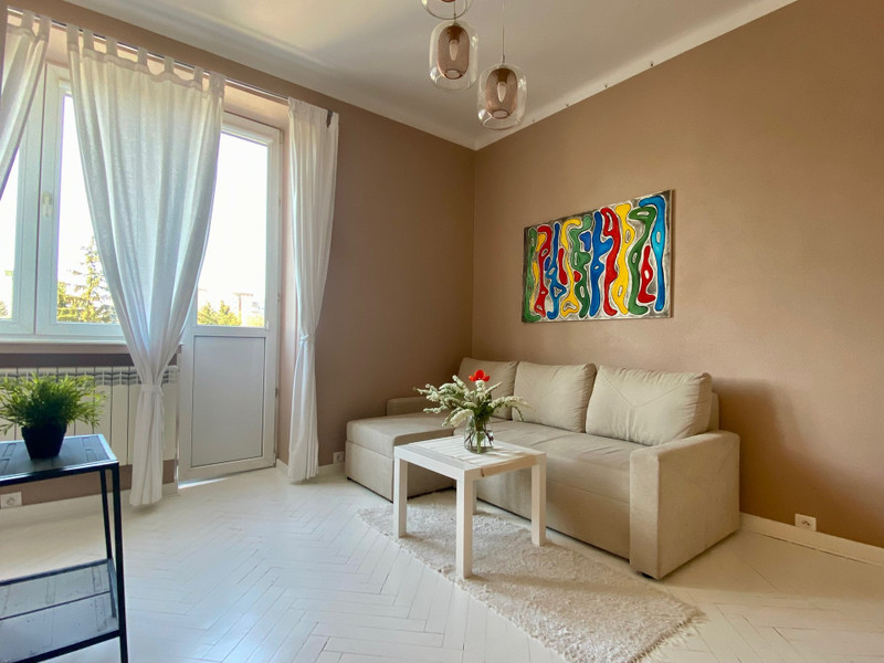 Wynajmę bezpośrednio na krótszy lub dłuższy okres przytulne mieszkanie w przedwojennej klimatycznej i zadbanej kamienicy na Saskiej Kępie. Mieszkanie składa się z salonu, wyodrębnionej sypialni, kuchni, przedpokoju i łazienki. Kuchnia wyposażona w lodówko-zamrażarkę, zmywarkę, piekarnik, płytę, okap i kuchenkę mikrofalową, czajnik, naczynia. W sypialni dwuosobowe łóżko. w salonie rozkładana kanapa (2-osobowa). W korytarzu w szafie pralko-suszarka. Mieszkanie znajduje się na 3 piętrze od strony zachodniej. Jest klimatyzacja. Fantastyczny widok na okoliczne drzewa i domy.