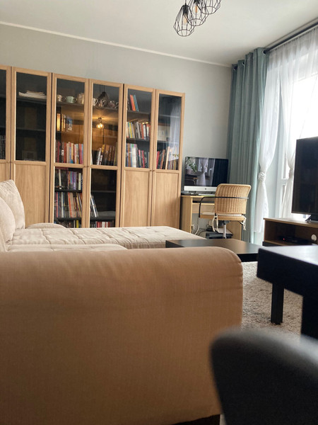 do wynajęcia od marca 2026 bardzo ładne mieszkanie w Pruszkowie. Powierzchnia 37 m2, dwa pokoje (salon z aneksem kuchennym i sypialnia), łazienka z dużą wanną, balkon. Mieszkanie w pełni wyposażone, wchodzisz i mieszkasz. W mieszkaniu jest zamontowana klimatyzacja. Na wyposażeniu: zmywarka, piekarnik, pralka, garnki, talerze, sztućce. Są także trzy pojemne szafy, jedna w sypialni i dwie na przedpokoju.