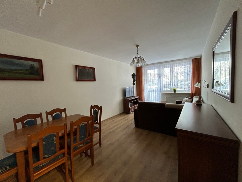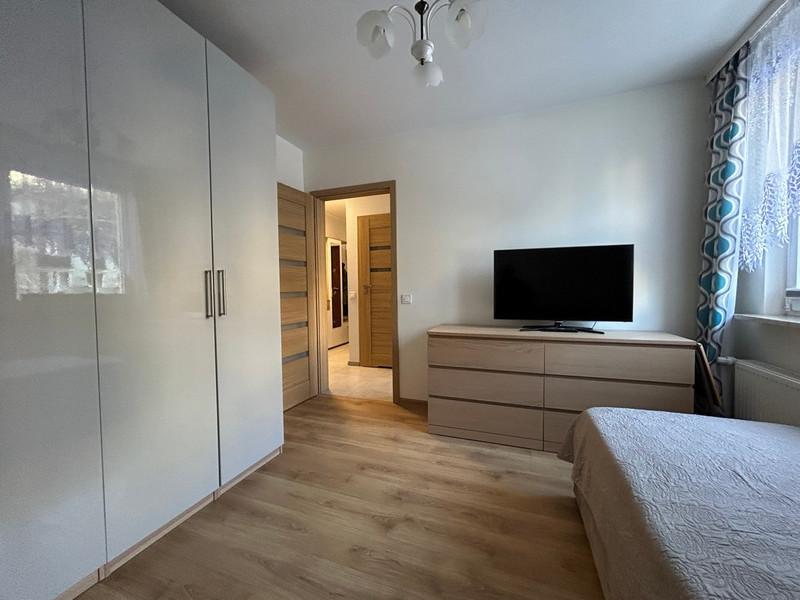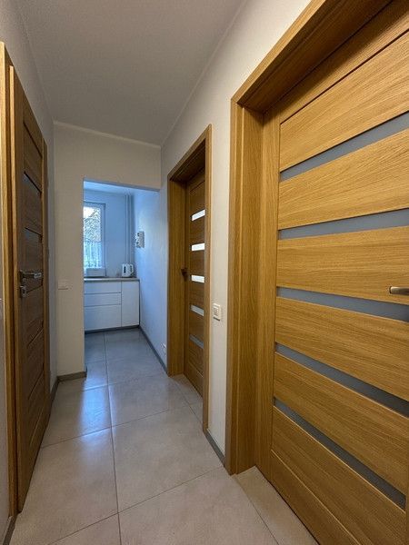 Mieszkanie składa się z salonu z balkonem, sypialni, niezależnej widnej kuchni, łazienki i przedpokoju. Salon od strony południowej dzięki czemu mieszkanie jest słoneczne i ciepłe. Znajduje się na parterze w 4 piętrowym bloku z lat 70tych wykonanego w technologii białego pustaka, ocieplony. W lokalu centralne ogrzewanie. W 2023 roku zakończony generalny remont z wymianą instalacji wodnej, elektrycznej, podłóg, drzwi, okien, grzejników. Liczniki wody ciepłej i zimnej. Do lokalu przynależy także piwnica.