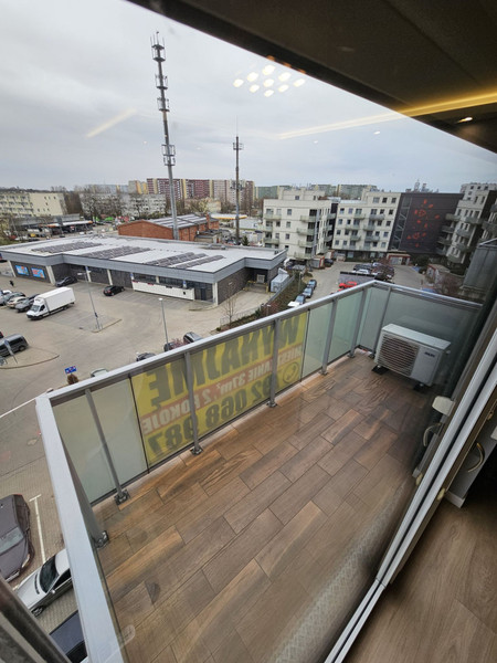 Do mieszkania z przynależny balkon umiejscowiony na najwyższym 5 piętrze z widokiem na otwartą przestrzeń, z oknami na wschód oraz balkonem (ponad 5 m2) wykończonym gresem imitującym deski tarasowe.