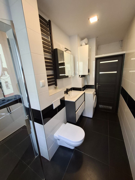 – łazienka z dużą kabiną prysznicową
