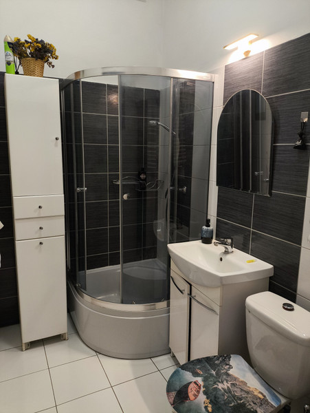 Duży przedpokój, łazienka. Osobna, jasna duża kuchnia ze stołem dla 4 osób. Wyposażona w nową lodówkę, pralkę Bosch, kuchenkę gazową.