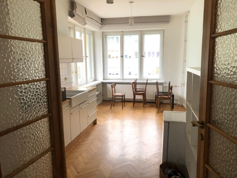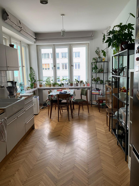Od 1 lutego to piękne mieszkanie czeka na nowych lokatorów, równie solidnych i miłych jak dotychczasowi. Blisko 70-m., w modernistycznej kamienicy z końca lat 30. XX w. przy ulicy Litewskiej w Warszawie. Pierwszorzędna lokalizacja - Śródmieście Południowe, przecznica między al.Szucha i Marszałkowską, w sąsiedztwie Łazienek i Parku Ujazdowskiego. Mieszkanie znajduje się na 3 piętrze. Ma świetny rozkład: obszerny hall 12,5 m, pokój ok. 14 m, drugi 20,2 m i trzeci, 17,1 m, z dużym balkonem typu loggia (ten pokój z aneksem kuchennym pełni funkcje kuchni i jadalni). Jest bardzo widne i ciche, choć to ścisłe centrum miasta (okna dwóch pokoi wychodzą na podwórko, trzeciego - kuchni z jadalnią na wewnętrzną uliczkę obok budynków MSZ). Osobna łazienka (z oknem) i osobne WC, mini garderoba/składzik oraz oryginalne szafy wbudowane w ściany w hallu. Wysokie stropy - ok. 3 m. Oryginalny parkiet, odnowione drewniane drzwi sprzed wojny wraz z detalami. Kamienica w 2025 r. przeszła gruntowny remont (klatki, piwnice, brama wjazdowa), zaś mieszkanie zyskało nowe, drewniane okna (na zdjęciu jeszcze stare przedwojenne okna). W klatce jest winda, do mieszkania przynależy piwnica. Mieszkanie jest doskonale skomunikowane, 10 minut piechotą do metra Politechnika, w sąsiedztwie liczne linie tramwajowe i autobusowe (przystanki plac Zbawiciela i plac Na Rozdrożu). Miejsca parkingowe na ulicy pod budynkiem, istnieje również możliwość wynajęcia od ZGN miejsca postojowego w garażu pod budynkiem. W lokalu użytkowym od frontu kamienicy działa sklepik spożywczy.
