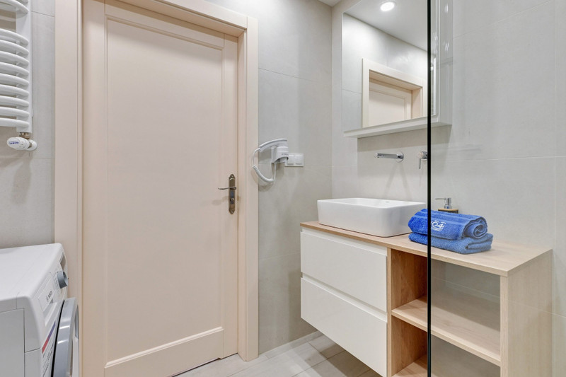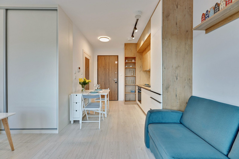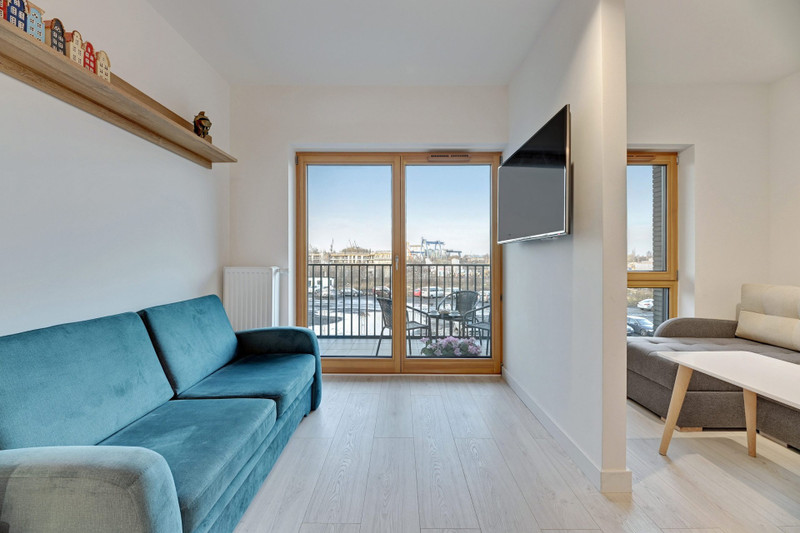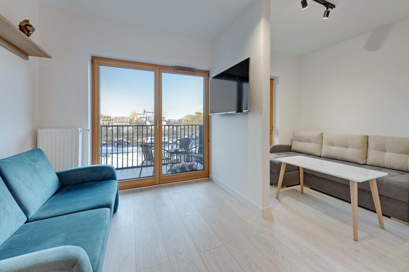 Apartament do wynajęcia znajduje się jednej z nowszych i najciekawszych inwestycji w Gdańsku - Nadmotławie. Apartament składa się z salonu połączonego z kuchnią i oddzielonej ścianką części sypialnianej oraz dużej łazienki. W części sypialnianej znajduje się dwuosobowa kanapa oraz funkcjonalna szafa z przesuwanymi drzwiami. Łazienka z w.c. wyposażona jest w duży prysznic, pralkę, nowoczesną umywalkę i pojemne szafki. Część kuchenna w pełni wyposażona w sprzęt AGD (lodówka, zmywarka, płyta kuchenna, piekarnik, czajnik i dużo szafek)oraz pełny komplet zastawy stołowej (sztućce, talerze, garnki, kubki, szklanki, deski itp.). Mieszkanie dodatkowo wyposażone w deskę do prasowania, żelazko, suszarkę na ubrania i odkurzacz. W salonie znajduje się sofa (dwuosobowa)z funkcją spania. Telewizor Samsung 55 cali. Telewizja kablowa i Internet światłowód WIFI. Na każde łóżko jest komplet pościeli. Na balkonie znajdują się krzesełka i stolik.