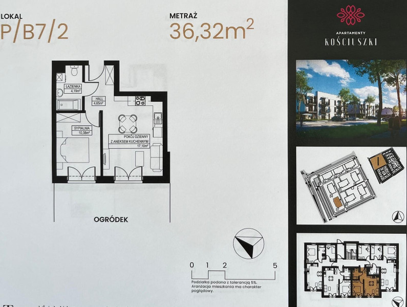 Mieszkanie 2-pokojowe z ogródkiem na nowym, kameralnym osiedlu w cichej okolicy pod adresem ul. Rumiankowa 14; Wrocław - Zacharzyce. W cenie prywatne miejsce parkingowe. Salon + aneks kuchenny 17,10 m2, sypialnia 10,38m2, łazienka 4,19m2, hol 4,65m2. Apartament jest zlokalizowany 1km od wschodniej obwodnicy Wrocławia, 2km od stacji PKP Brochów, na linii autobusu 870 Św Katarzyna-Zacharzyce-Iwiny-Brochów-Tarno gaj. Przedszkole „Kolorowy Kącik” 1km, szkoła podstawowa im. Jana Brzechwy 1,5km. Osiedle dysponuje sklepem „Żabka” oraz pełna infrastrukturą z zielenią, alejkami i oświetleniem.