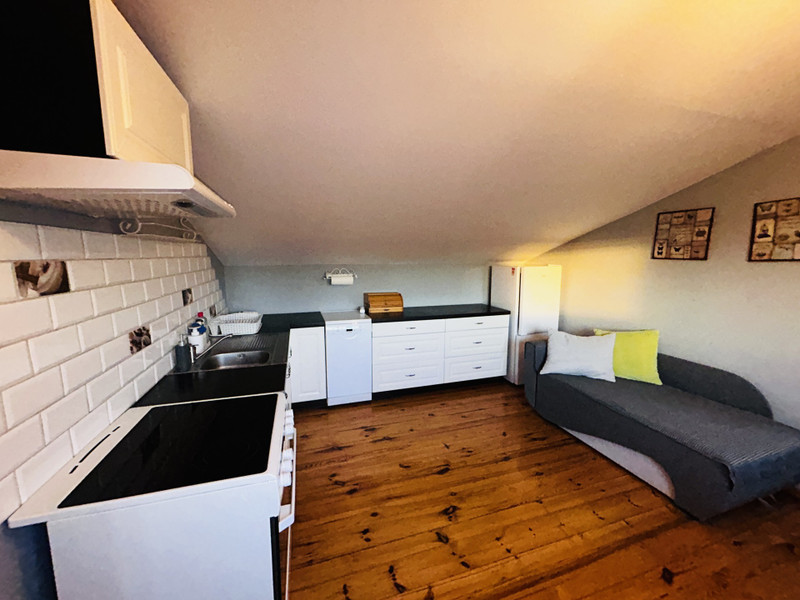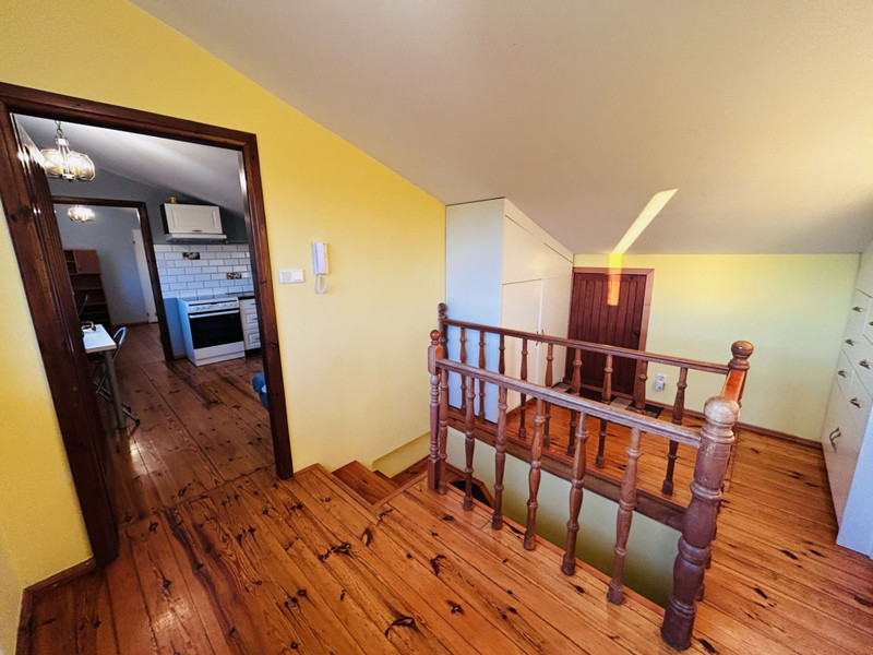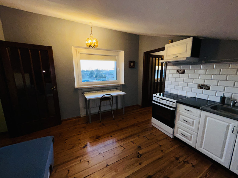 • jasnej kuchni 15m2 z ekspozycją okna południowo-zachodnią, skośny sufit, wyposażona w lodówkę, kuchenkę elektryczną oraz zmywarkę