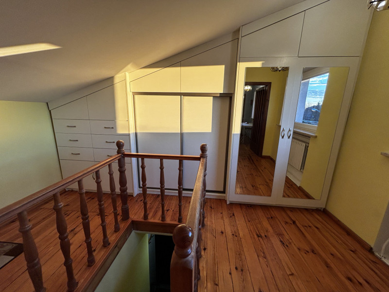 • jasnego pokoju 15m2 z ekspozycją okna południowo-zachodnią, skośny sufit