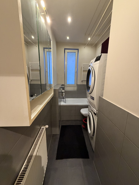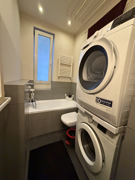 - łazienka z wanna, pralka i suszarka, WC