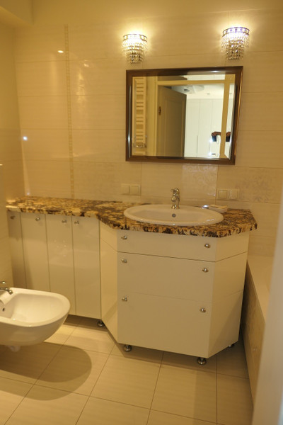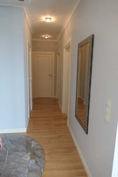 Bezpośrednio. słoneczne mieszkanie na ostatnim(13) piętrze budynku. Gwarancja pięknych widokow za dnia oraz w nocy. Mieszkanie świeżo wyremontowane. Wykończone w wysokim standardzie: drewniana podłoga, klimatyzacja, nowoczesna kuchnia z pelnym AGD, kamienny blat. Dwie łazienki: jedna z wanną umywalką WC i bidetem, druga z WC umywalka i prysznicem. Mieszkanie posiada dwa pokoje po ok 15mkw oraz duzy salon połączony z kuchnią ok 30 mkw. W holu usytuowane są dwie przestronne szafy. Dodatkowo przy salonie loggia ok 10mkw gdzie od wiosny aż do późnej jesieni można stworzyć „maly ogród” lub dodatkowa przestrzen do przechowywania.