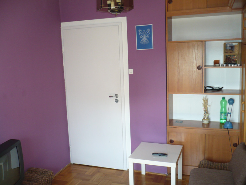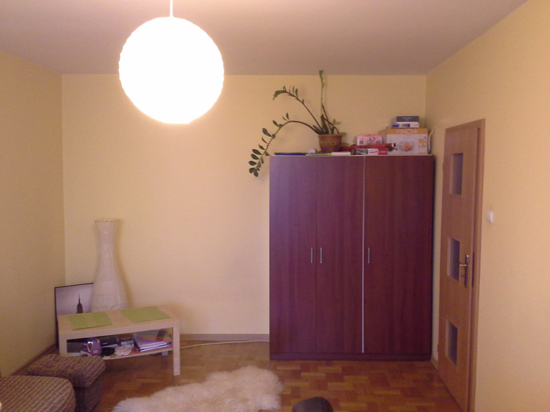 • duży pokój (ok. 25m2): z rozkładaną kanapą, stołem, krzesłem, szafą na ubrania, (z balkonem ok. 2m2)