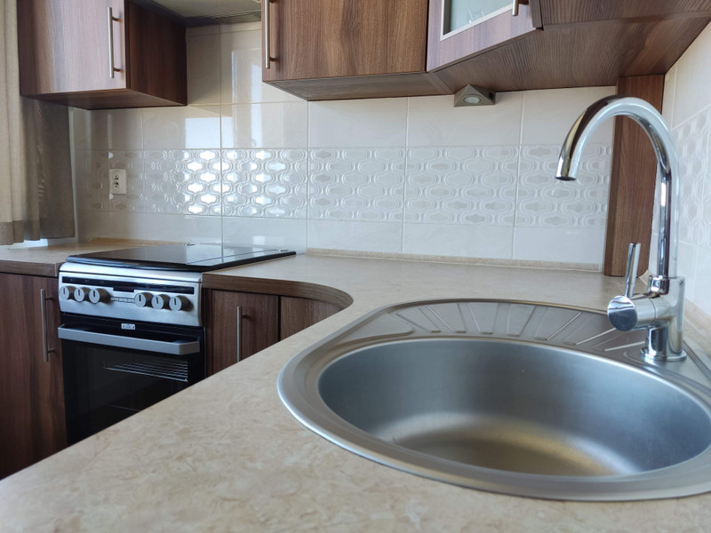 Mieszkanie znajduje się na 8. piętrze, z którego rozciąga się piękny widok na okolicę. Składa się z trzech pokoi (w największym pokoju telewizor), kuchni (lodówka, nowa kuchenka), łazienki (pralka), osobnego wc oraz przedpokoju i balkonu. Mieszkanie jest gotowe do zamieszkania.