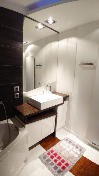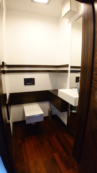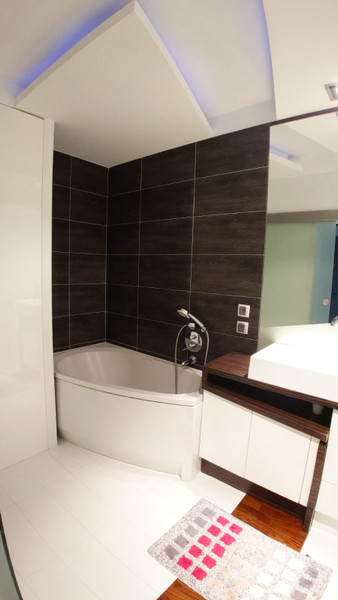 • łazienka z wanną i osobna toaleta, można by powiedzieć, że w części sypialnej, w toalecie ceramika Catalano, jest kwadratowo ale wygodnie, armatura Hansgrohe, podtynk Geberit