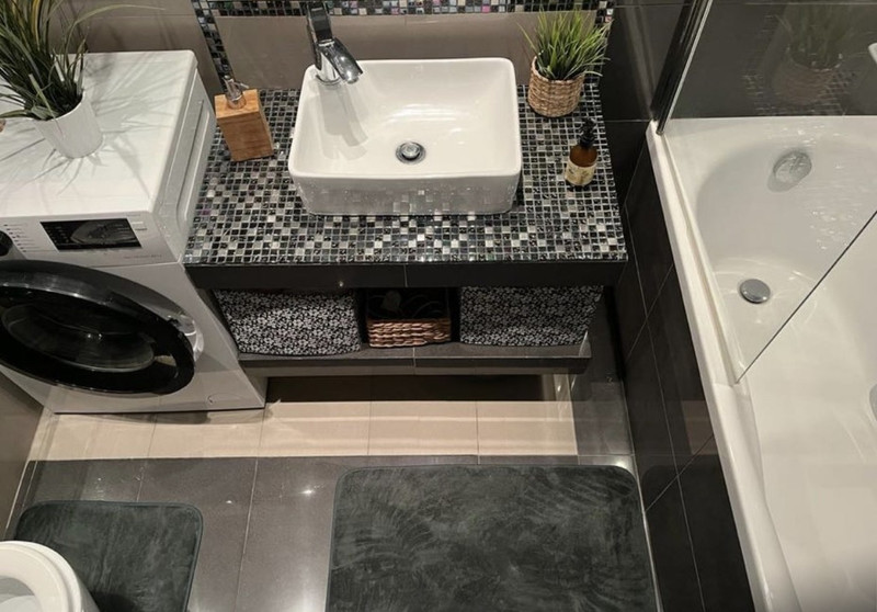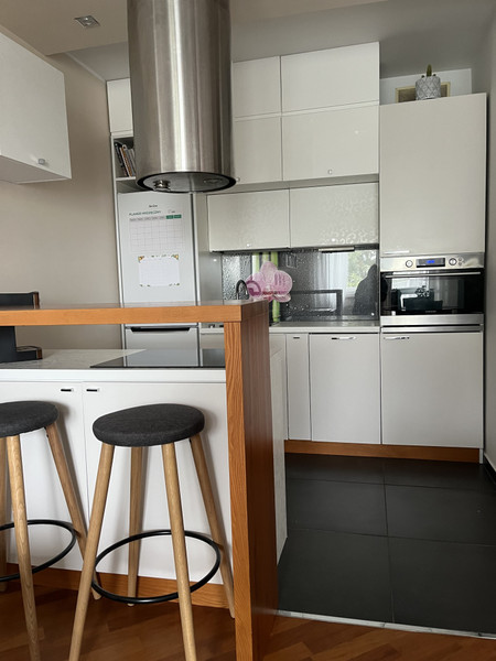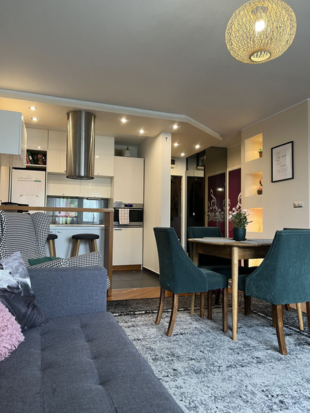 - aneks kuchenny w pełni umeblowany i wyposażony w sprzęt AGD (lodówka, piekarnik z mikrofalą, zmywarka, płyta indukcyjna, okap)