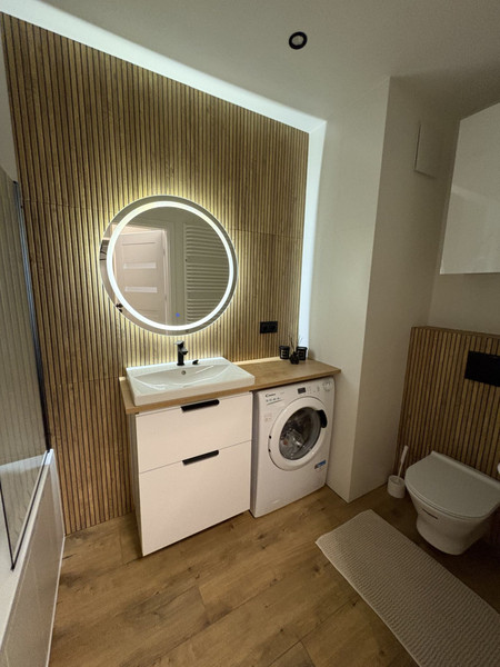 Wyposażenie: pełna kuchnia (AGD), pralka, duża szafa, sofa, łóżko.