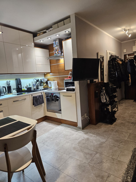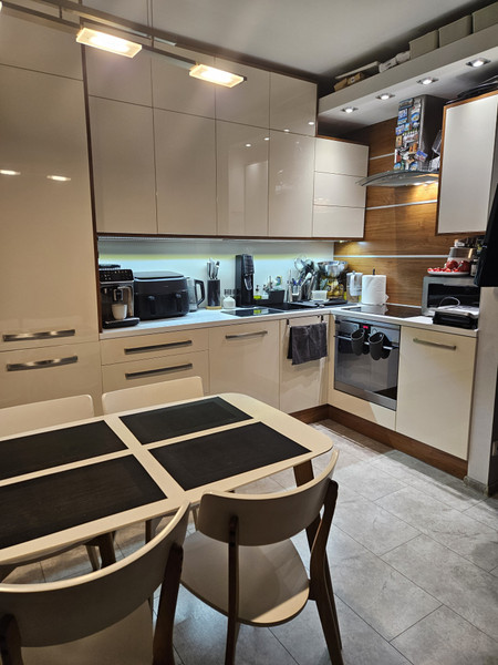 - kuchnia: meble w zabudowie, płyta indukcyjna, lodówka z zamrażarką, piekarnik, zmywarka, stół z 4 krzesłami,