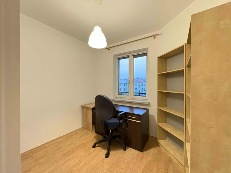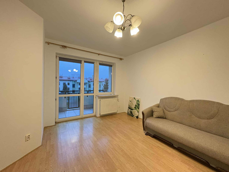 Mieszkanie na bliskiej Białołęce, dwupokojowe z balkonem. Trzecie piętro bez windy. Osiedle zamknięte z placem zabaw dla dzieci. Lokal po malowaniu. Mieszkanie składa się z: dużego salonu(z wyjściem na balkon), 1 sypialni, ciemnej kuchni, łazienki z wanną z WC. W salonie znajduje się rozkładana kanapa, dwa wygodne fotele ze stolikiem oraz bardzo pojemna zabudowana szafa, Sypialnia/pokój biurowy : biurko, regały, Kuchnia ciemna : kuchenka gazowa, piekarnik, lodówka, miejsce na posiłki. Dodatkowo mieszkanie posiada przestronny balkon z widokiem na patio. Lokalizacja : komunikacja miejska (tramwaje i autobusy), niedaleko do mostu Marii Curii-Skłodowskiej. Najbliższa stacja metra to MŁOCINY. W pobliżu znajdują się sklepy spożywcze, punkty usługowe, Galeria Północna, Żabki. Mieszkanie do doposażenia, zgodnie z życzeniem najemcy.