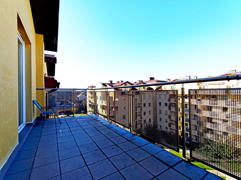 • Salon z aneksem kuchennym i wyjściem na duży balkon.