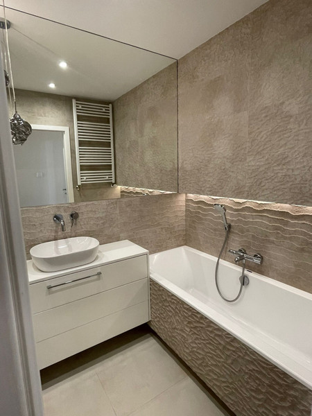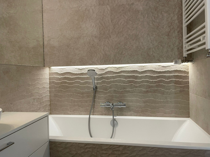 Łazienka główna – wyposażona w wannę, prysznic, toaletę. Ogrzewanie podłogowe