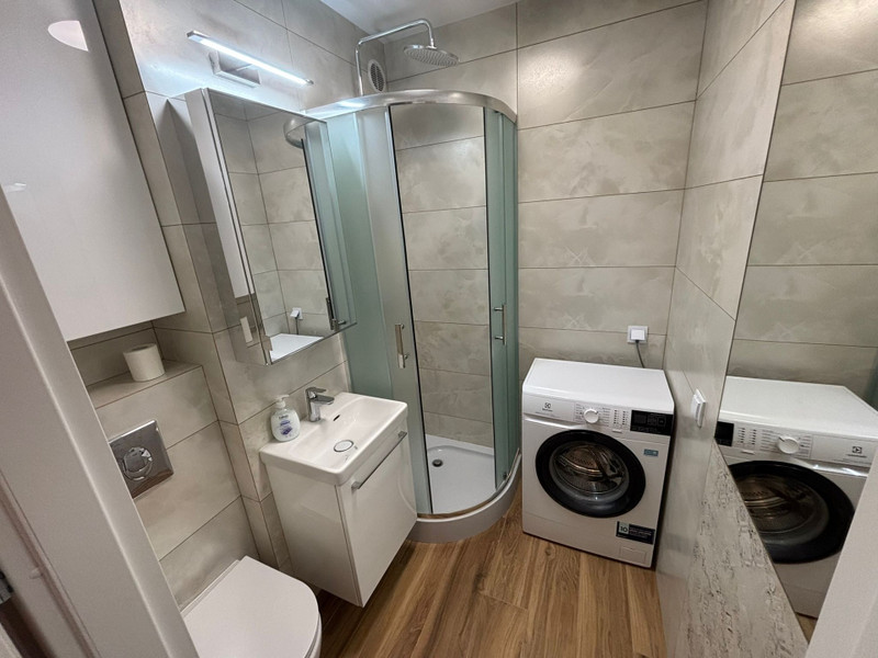 • nowa łazienka z kabiną prysznicową i nowa pralką