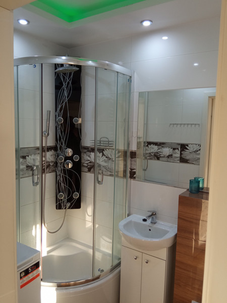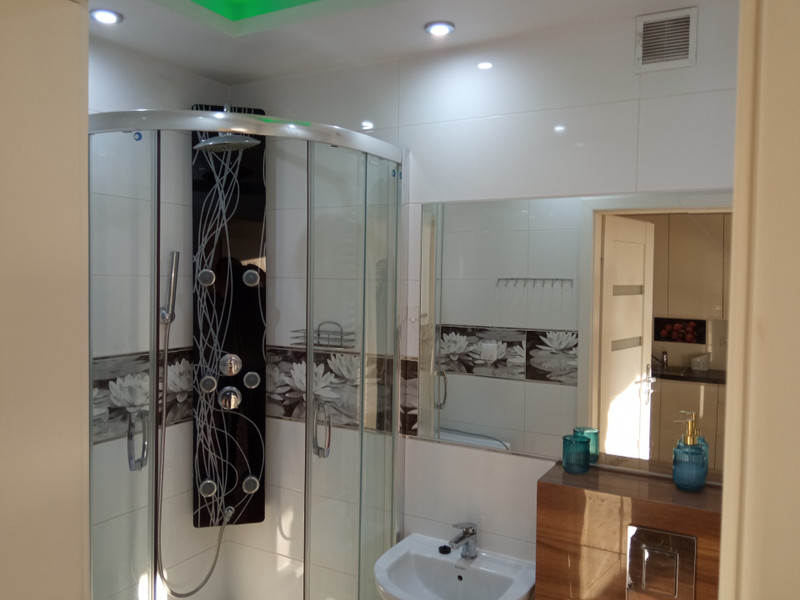 - w pokojach parkiet, w łazience i kuchni glazura i terakota
