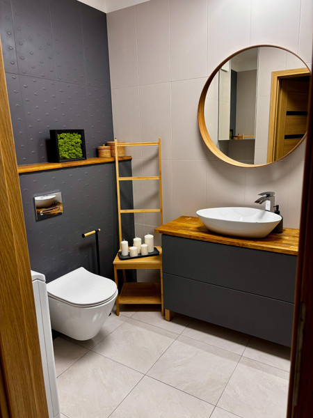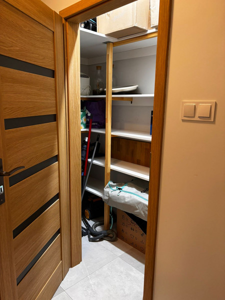 • Rozkład: 2 nieprzechodnie pokoje (salon, sypialnia); oddzielna, widna kuchnia; przestronna łazienka z prysznicem i pralką; dodatkowe pomieszczenie gospodarcze wewnątrz mieszkania