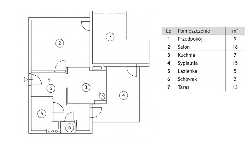• Powierzchnia: 56 m² + 13 m² taras od zacisznej strony