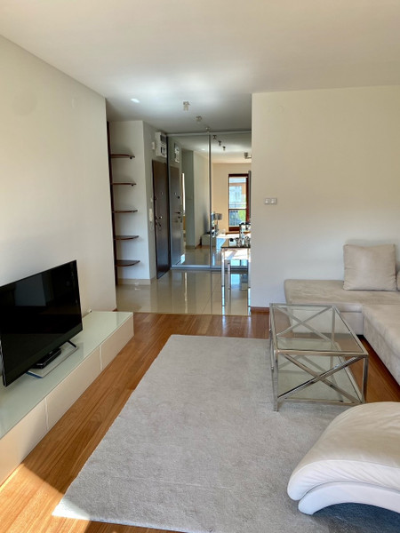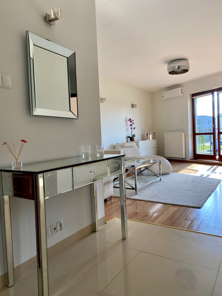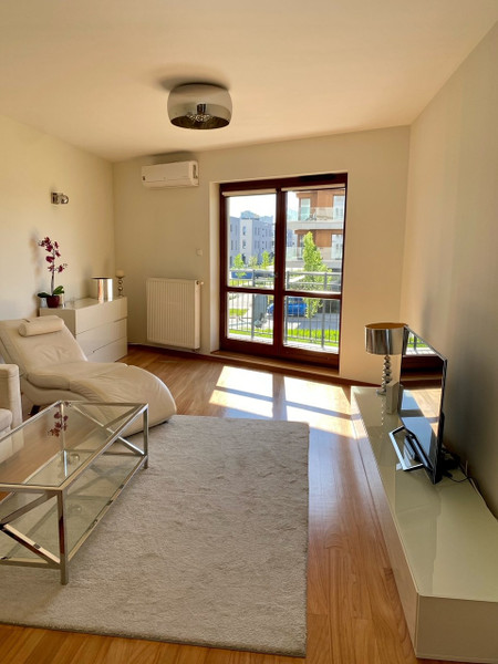 Wynajmę 2 pokojowe 60m2 mieszkanie (salon + sypialnia) z osobną kuchnią, dużą łazienką, przestronnym przedpokojem i balkonem.