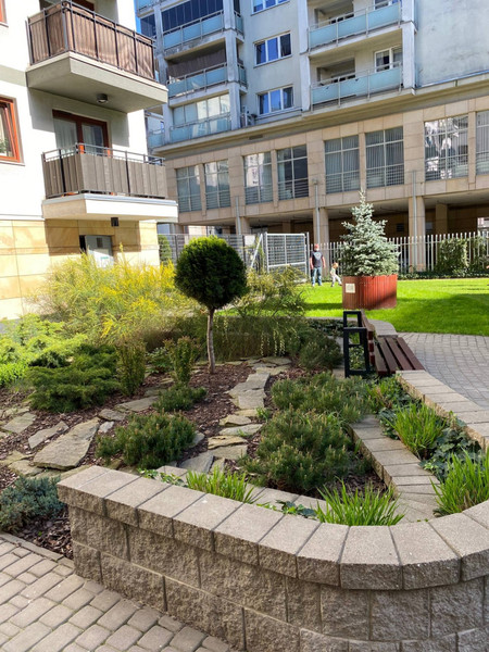 Budynek z ochroną, monitoringiem i ładnie zagospodarowanym patio.