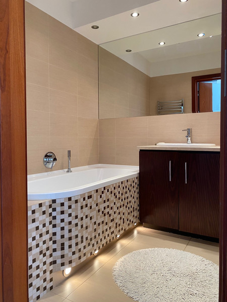 W salonie klimatyzacja. W łazience podświetlana wanna, podgrzewana podłoga.