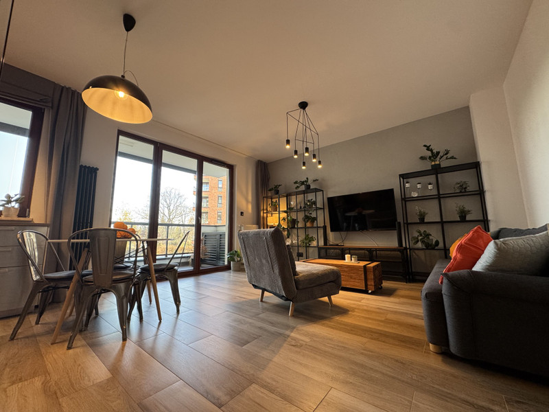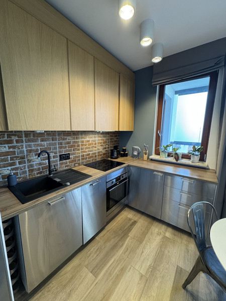 Beautifully finished and furnished. The apartment is equipped with: a washer-dryer, fridge-freezer, induction hob, oven, 2 x TV (in the living room and bedroom), soundbar, electric kettle, glasses, wine glasses, mugs, and cups.