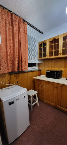 Podstawowe meble (szafa w przedpokoju i pokoju) i sprzęty AGD (lodówka, pralka, mikrofalówka), kuchnia gazowa z piekarnikiem.