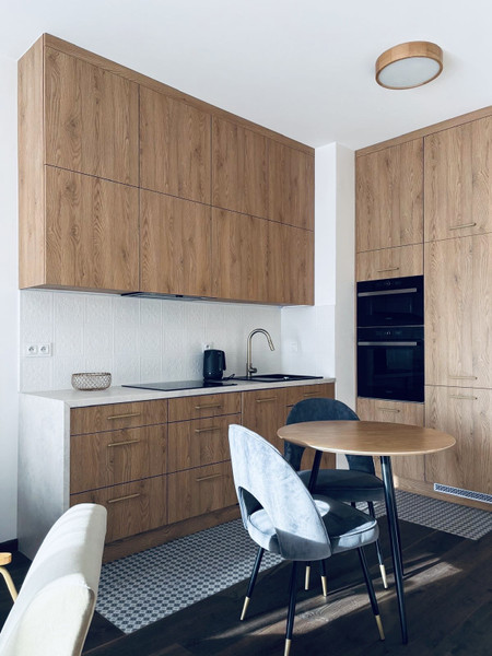 - Kuchnia w pełni wyposażona: piekarnik, płyta indukcyjna, mikrofala, lodówka z zamrażarką, czajnik, zmywarka